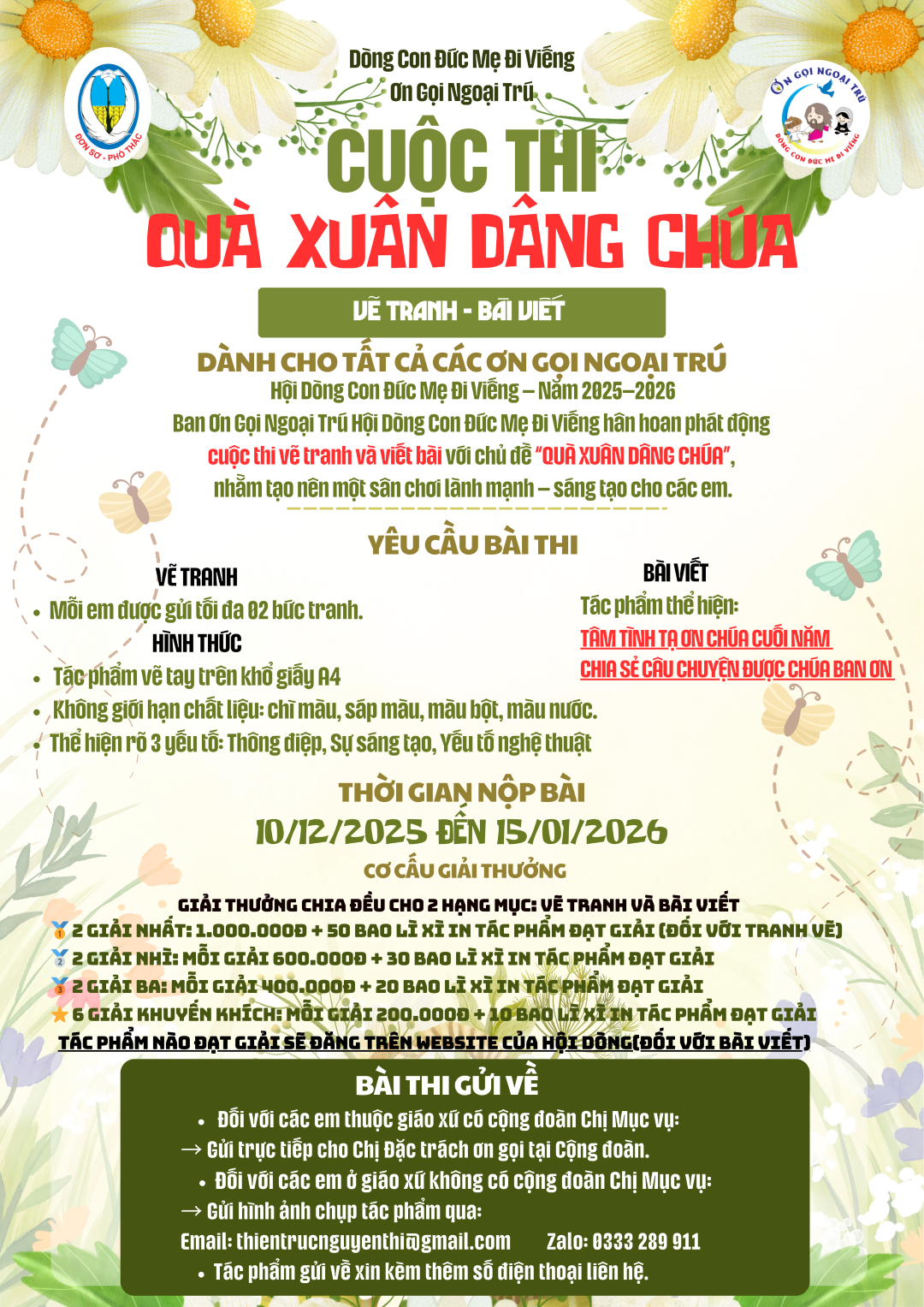Ơn Gọi Ngoại Trú – Cuộc thi “Quà Xuân Dâng Chúa” 0 By Dòng CĐMĐV on December 4, 2025 Ơn Gọi Ngoại Trú