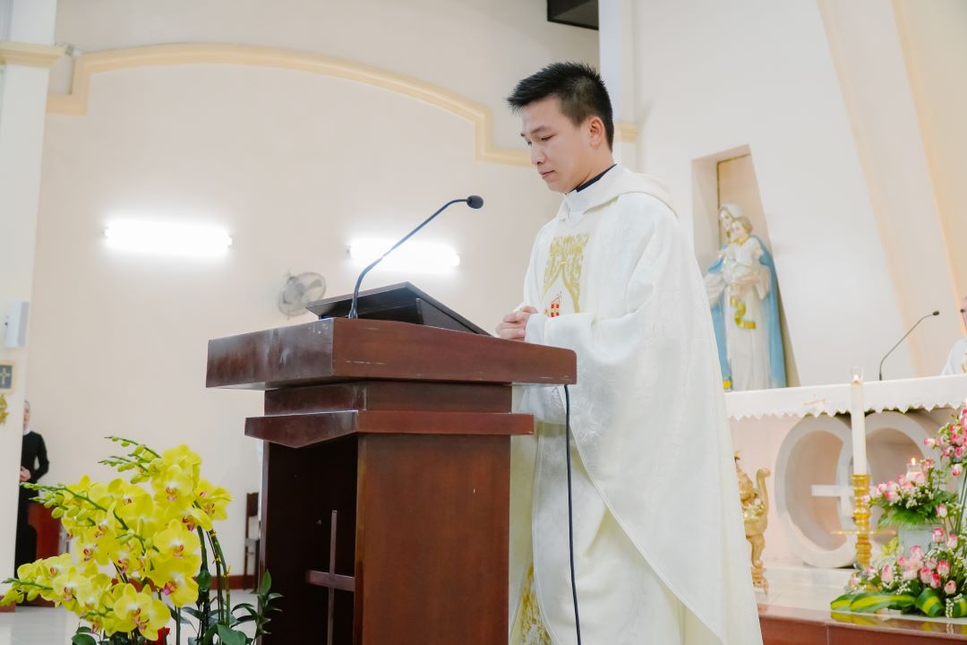 Trong phần Phụng vụ Lời Chúa, Tân Linh mục Phanxico Xavie Lê Trường Sinh tiếp tục trao gởi đến cộng đoàn tâm tình Tạ ơn Thiên Chúa về ơn gọi Thánh hiến của mỗi người, qua những dấu chỉ mà Thiên Chúa đã tài tình dẫn dắt và kêu gọi cách cá vị. Kết thúc bài chia sẻ, cha cầu chúc cho Hội dòng luôn bừng cháy ngọn lửa nhiệt huyết dấn thân cho sứ mạng, tỏa sáng đức khiêm nhường như Thánh Toma Aquino mà Hội Thánh kính nhớ ngày 28/01, và đặc biệt là luôn sống tâm tình tạ ơn để mỗi ngày là một bài ca tri ân Thiên Chúa.
