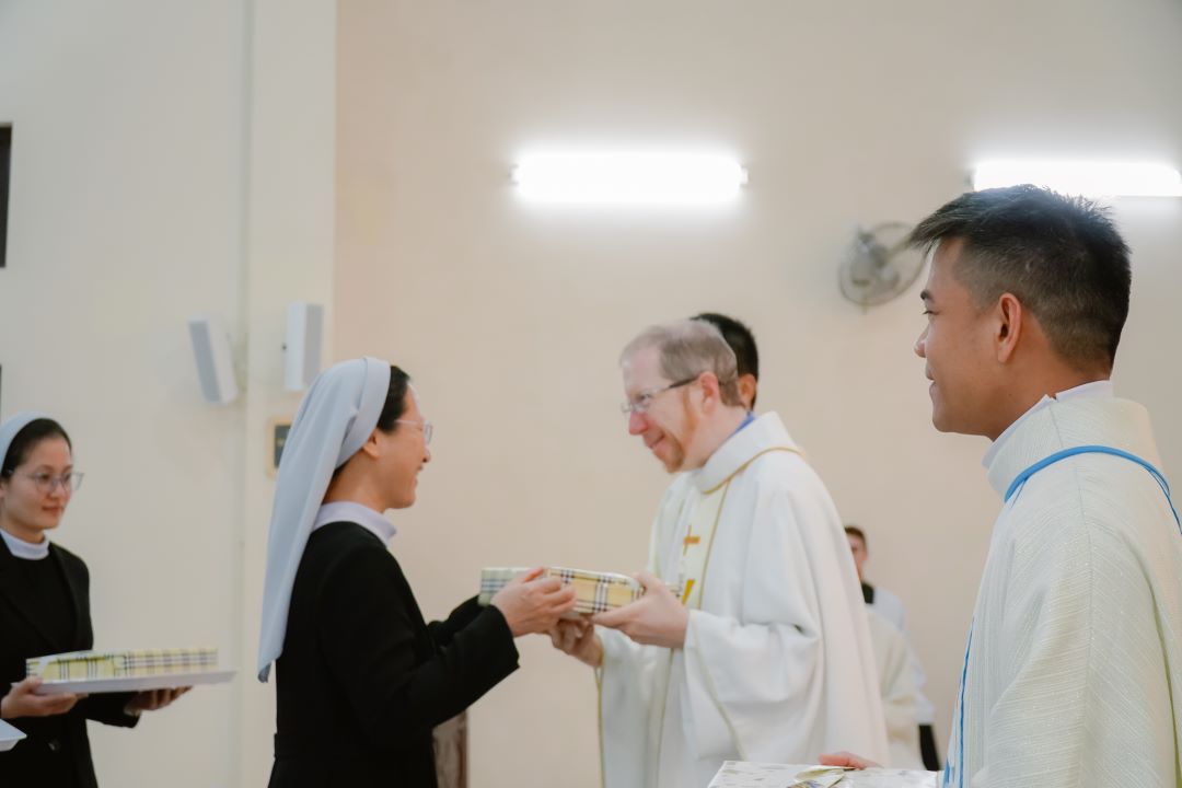 Chị Tổng Phụ trách thay lời cho các chị em trong Hội dòng cầu chúc quý Tân Linh mục tràn đầy ơn khôn ngoan và lửa mến của Chúa Thánh Thần để tiếp bước hành trình sứ vụ mới một cách đầy sung mãn và là hình ảnh sống động của Chúa Giêsu – Mục tử nhân lành. Cầu chúc cho hành trình của quý Cha, quý Thầy tiếp tục lan tỏa tình yêu, bình an và niềm vui cho mọi người và ở mọi nơi quý Cha, quý Thầy hiện diện.